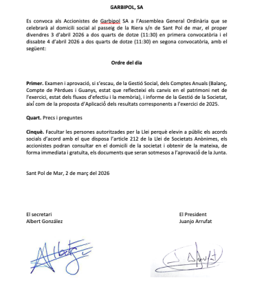 Garbi Pol S.A. està inscrita en el Registre Mercantil de Barcelona i el nostre CIF és